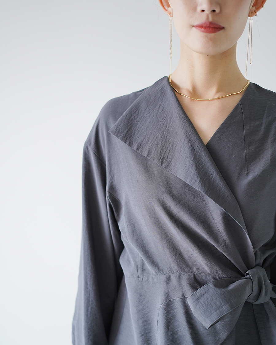 AKIRANAKAから大人でエレガントな佇まいのカシュクールシャツ。