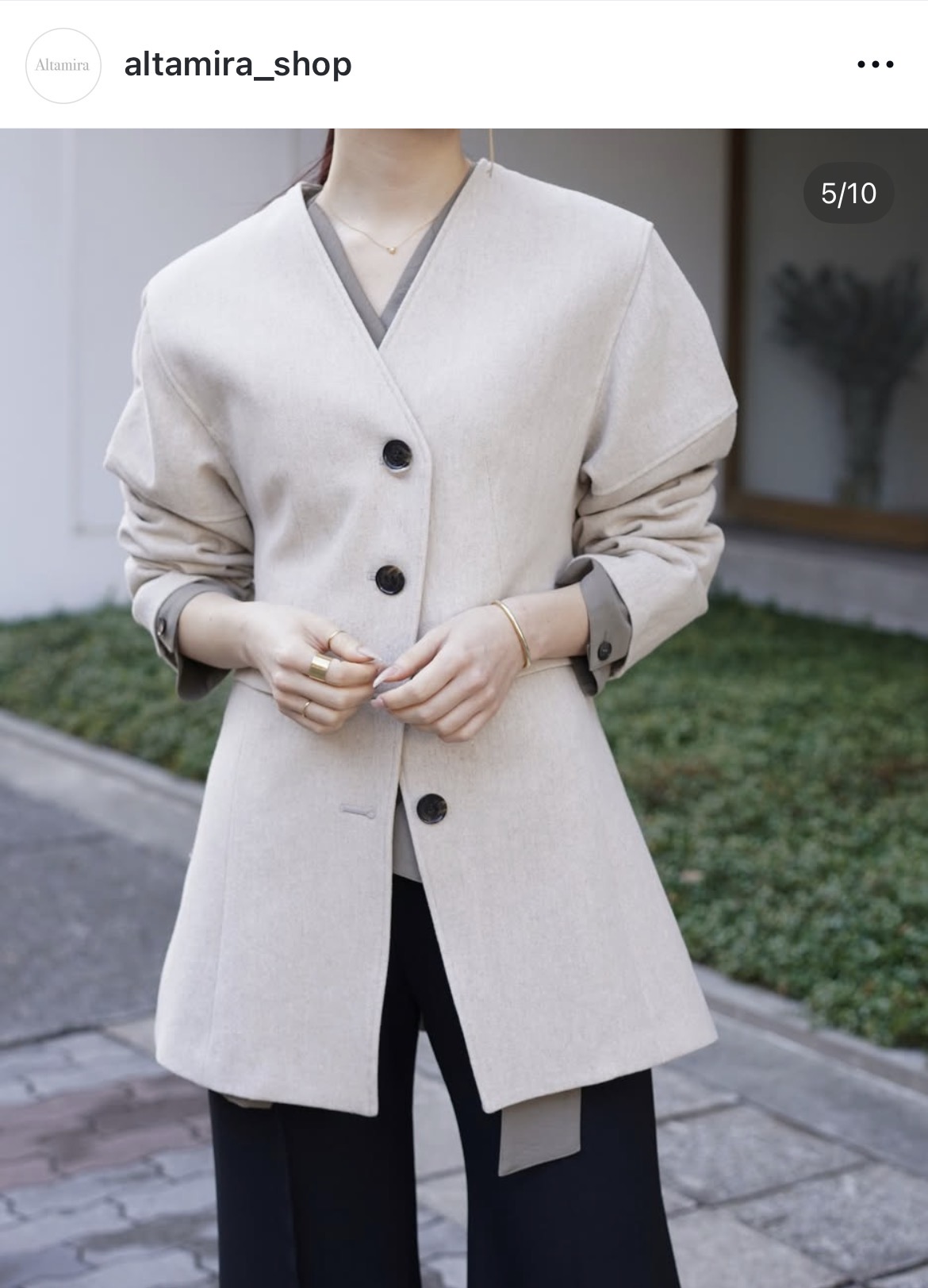 もう少し暖かくなる頃はこちらのコットンリネンのジャケットとのレイヤードがおすすめです。