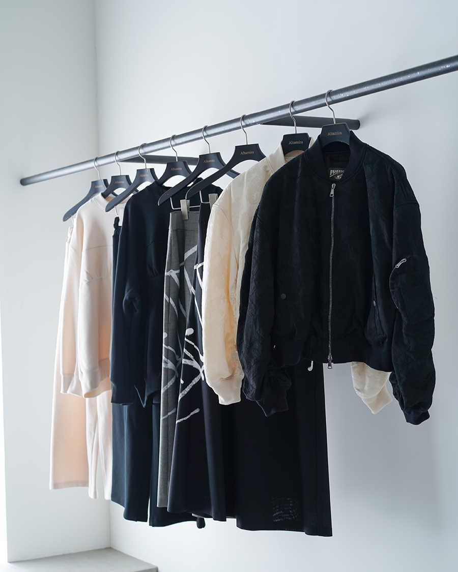 生地の選択、パターンの設計、その背景がきちんと洋服から伝わるラインナップ。