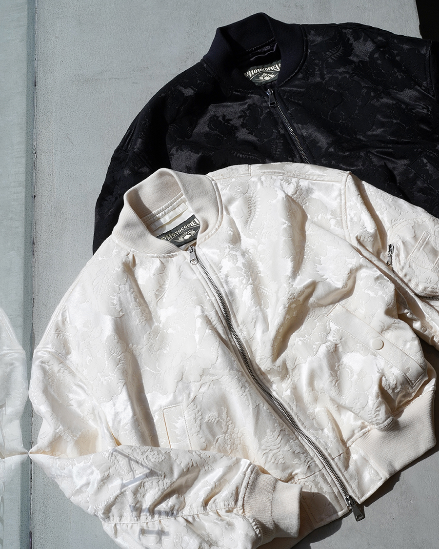 今回の入荷では、ダマスク柄ジャカードを用いたMA-1、身体と親和性のあるカーブを描くマキシスカート、そしてブランドの背景が詰まったLOTUS60 classic terryによるスウェットセットアップが揃いました。