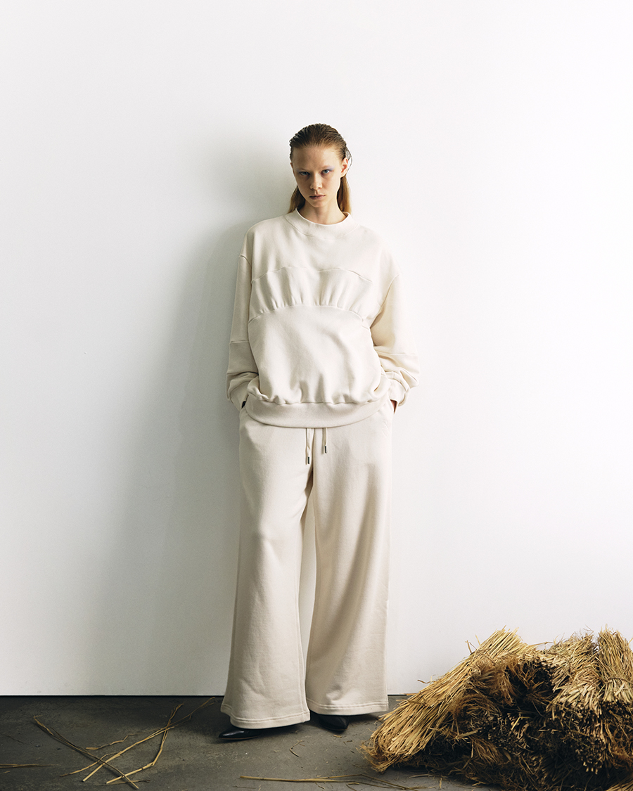 身体の曲線や素材の柔らかさを通して、“女性のための服”として成立させています。