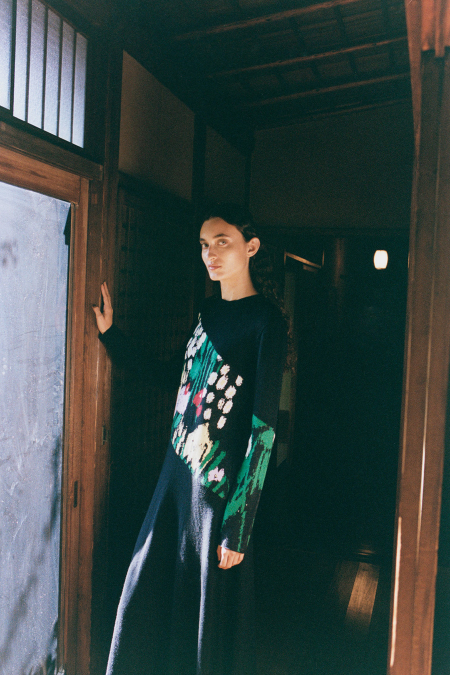 AKIRANAKAが得意とするインターシャのニットに、“借景”の考え方を落とし込んだ一着。
