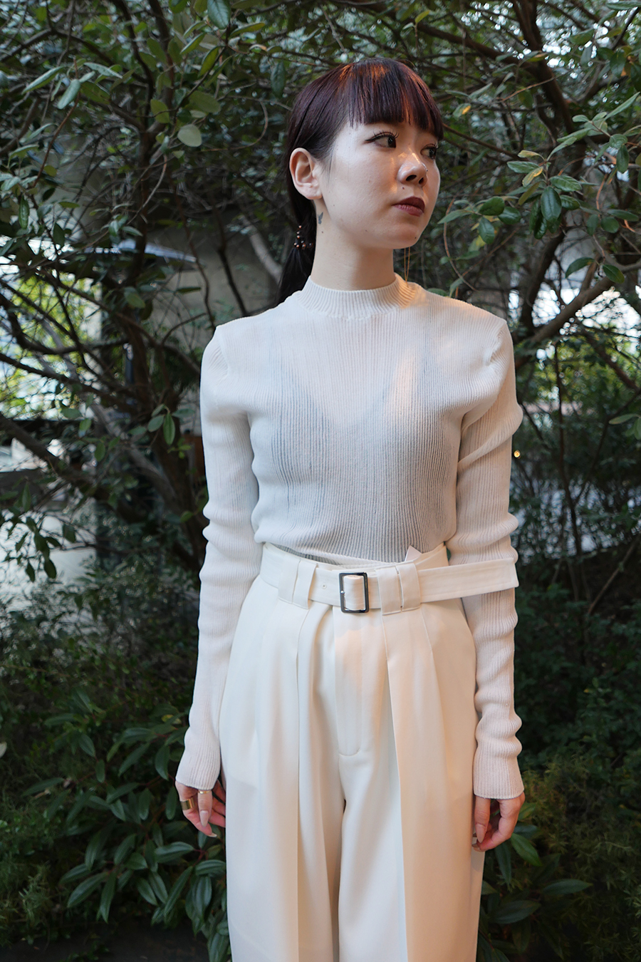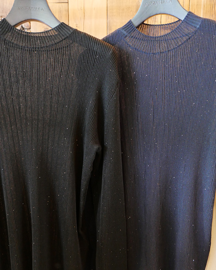 ニットでありながら平面的にならず、視線の流れを感じる仕上がりが印象的です。