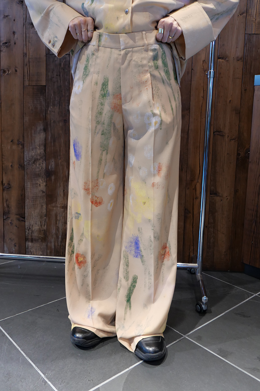 こちらもいつも人気のトリアセテートのフレアパンツ。