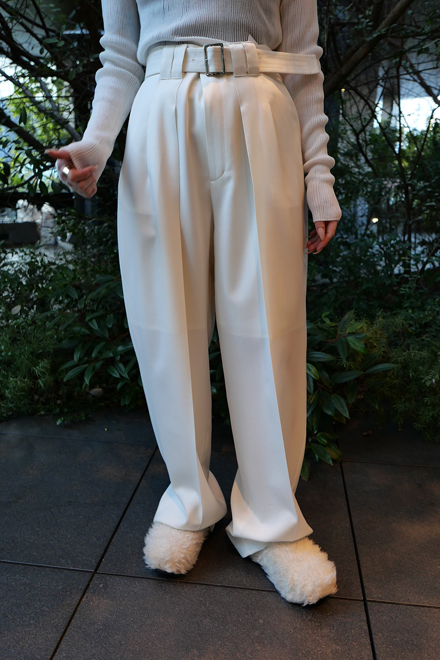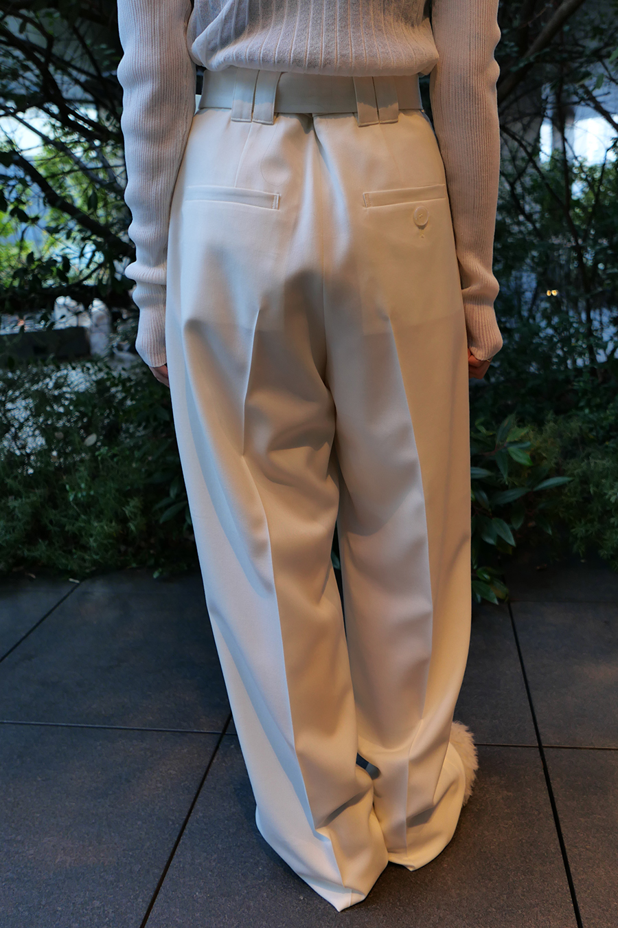 今回も豊富なラインナップのパンツの中でも、ウール100%のテーパードシルエットのパンツ、おすすめです。