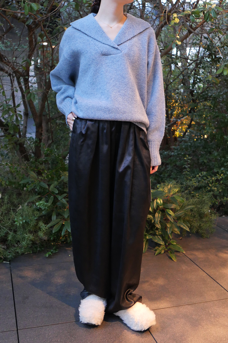 バレル型のゆったりとしたシルエットに、起毛がかったこの素材。