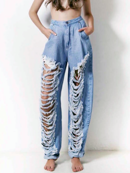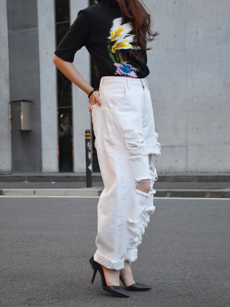 見た目はそこまでハードではありませんがほどよくダメージ感のあるワイドデニム。