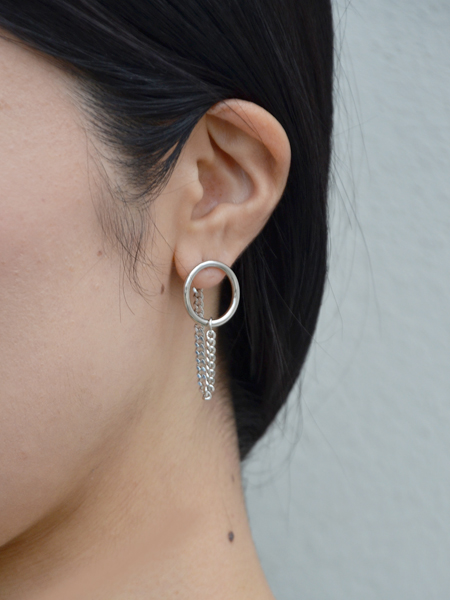 無機質でシンプルなリングとチェーンを組み合わせたピアス。