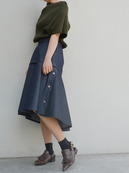 膝丈のデニムスカート。