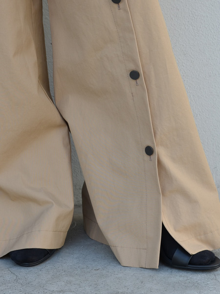 ハリ感はそのままに真夏でも着やすい生地を贅沢に使ったこちらのボトムなら暑い日でも履く頻度が増えること間違いなしです。