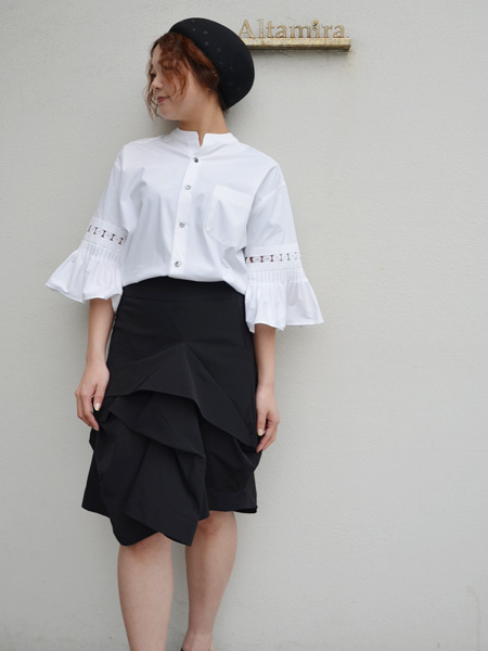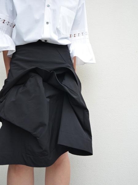 ハリ感のある素材を使いより動きのあるシルエットを作り出しています。