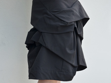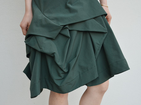 折り紙を折るように幾重に重なった生地から生まれるドレープが魅力。