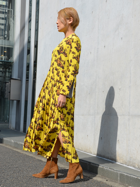 AKIRANAKAの総柄ドレスに合わせて。