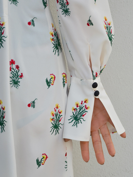 真っ白なドレス一面に、ノスタルジックな小花の刺繍が施されています。