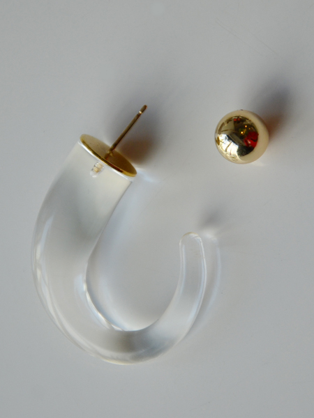 勾玉のようなインパクトのあるシルエットも、クリアーなので付けやすいですね。