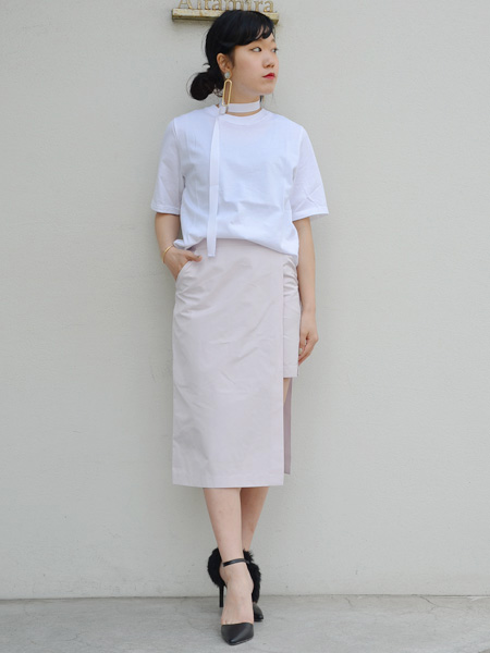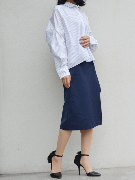 写真では春らしくsakayoriのシャツと合わせて抜け感のあるコンサバを意識してみました。