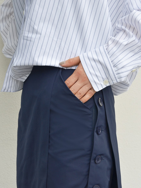 スカートは膝まで隠れる長めの丈感なので、抵抗なく穿けるかと思います。