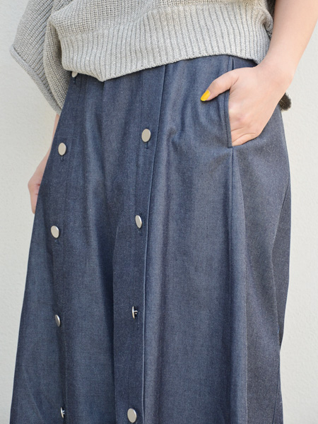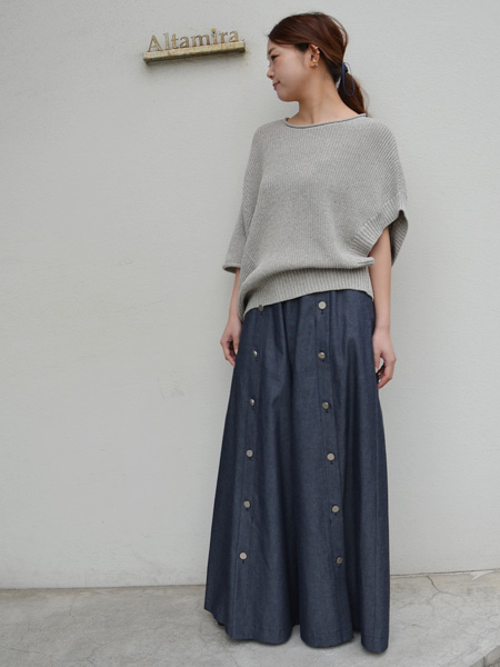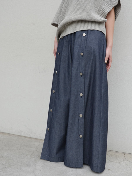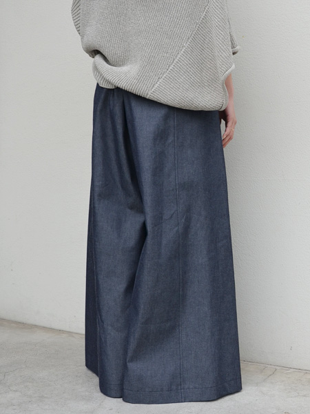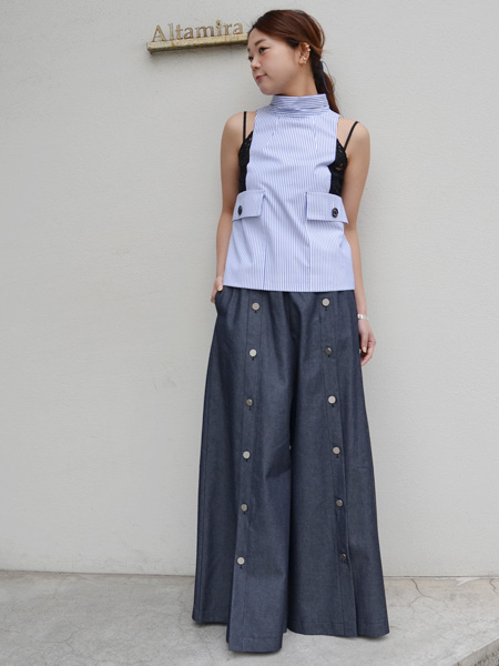 もっとあったかくなってきたらAKIRA NAKAの華やかトップスに合わせて履きたいですね。カラーが重くないブルーなので夏に履いても軽やかな印象。