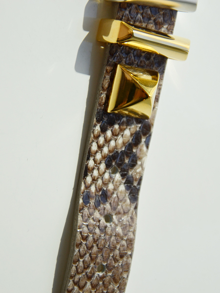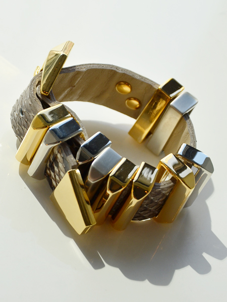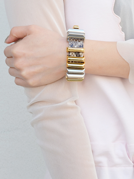 ブラウン味のパイソンカラーで主張しすぎず程よい存在感でBijou RIの中で今最も注目されているブレスレットです。