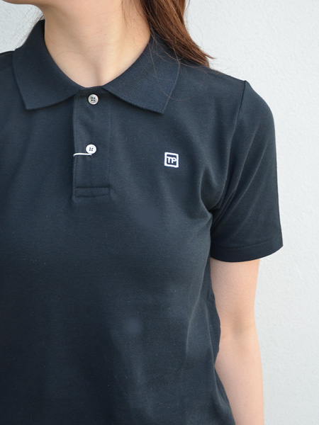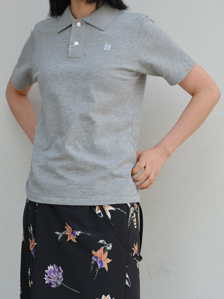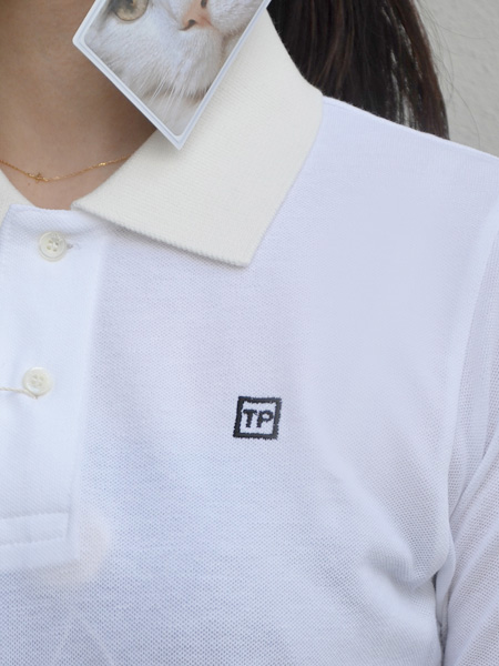 シアタープロダクツのポロシャツ、毎シーズン刺繍のデザインや位置が変わりますが今シーズンは、左胸に、TPの刺繍。