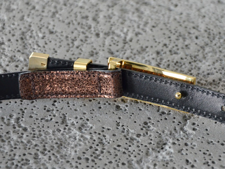素材を変えてリリースされているベルト、今シーズンはキラキラと光る春夏にぴったりのメタリックカラーのレザーとなって登場しました。