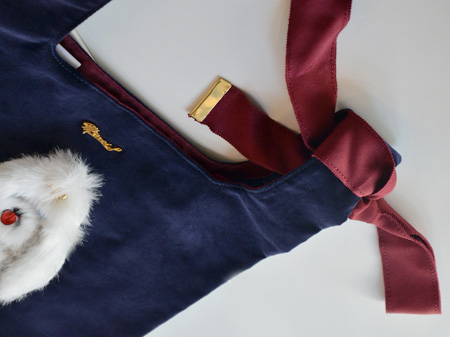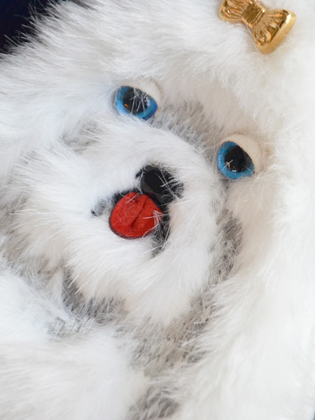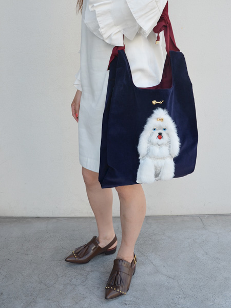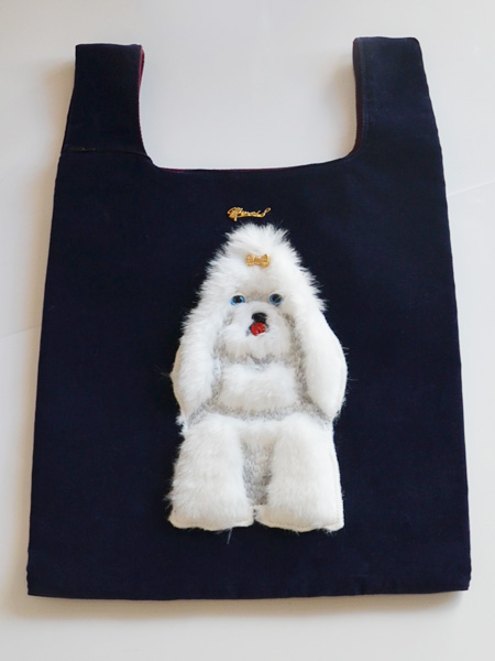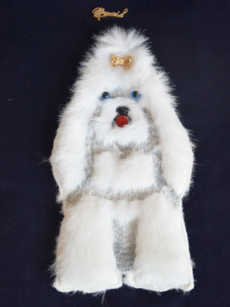 お高級な印象のベロア素材に、もふっもふの真っ白なプードル。