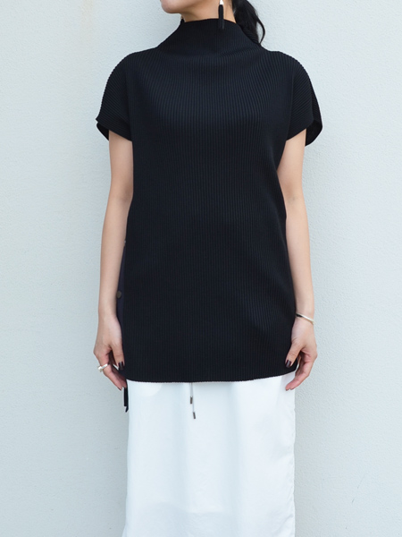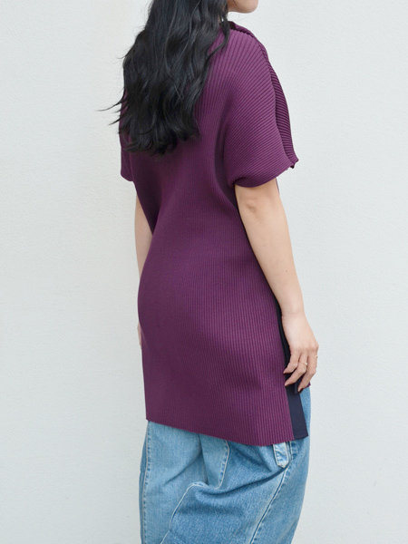 ドルマン袖のフラットな仕立てが目を惹くリブプルオーバー。