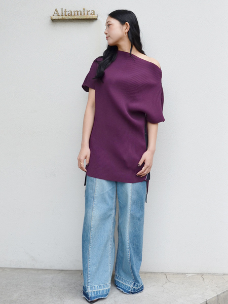 4枚目の写真では片方だけオフショルにしたバージョンで着ています。