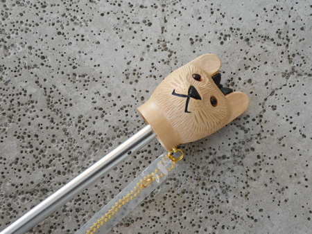ハンドル部分がアンニュイな猫モチーフという、猫好きさんにはたまらないデザインですよね。よく見るとリボンまでつけておめかししてます。。。くーーーぅ♡