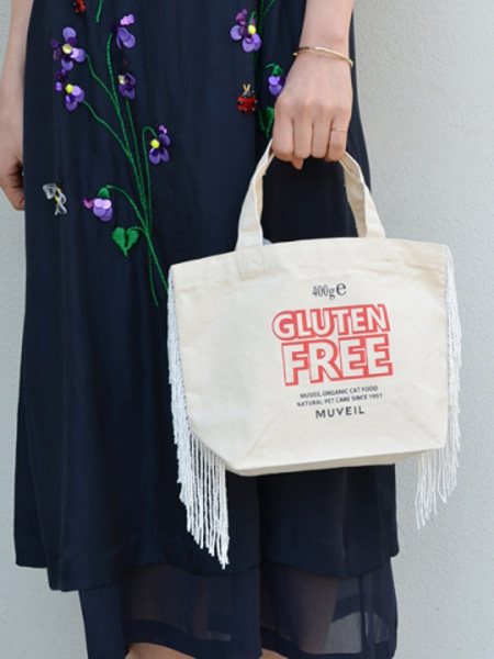 猫缶をモチーフにしたこちらのバッグは大きく書かれたグルテンフリーのロゴがポイント。