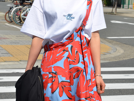 トップスはTシャツなどカジュアルでシンプルなものが多くなってしまう夏には、これくらいインパクトのあるボトムが挑戦しやすくなりますね^^