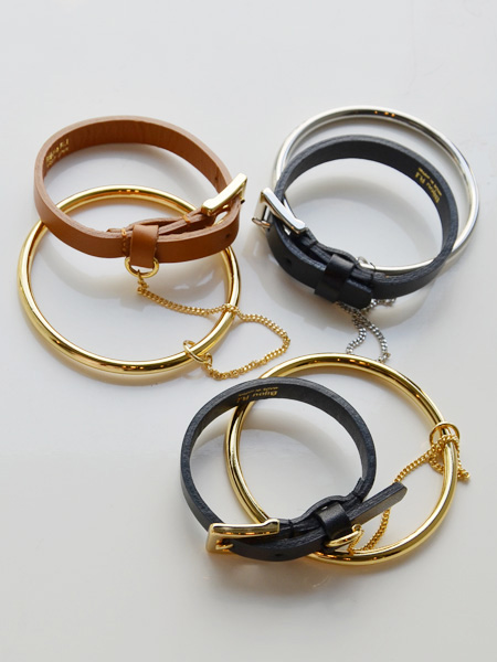 毎シーズン人気のレザーバングルとリングを細いチェーンで繋げた2連ブレスレットです。