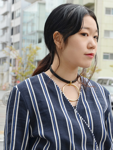 Vネックやオフショルダーなんかのがっつり肌見せする日にはもちろん、こうしてさりげなく合わせてもしっかりと主張のあるアクセサリーです。