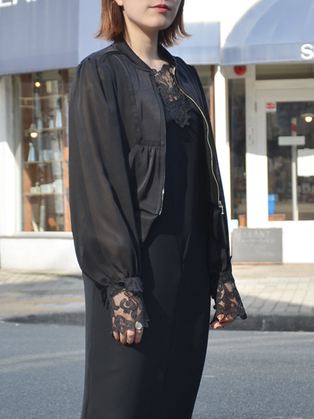 ブルゾンの袖と胸元のレースがとっても華やか。