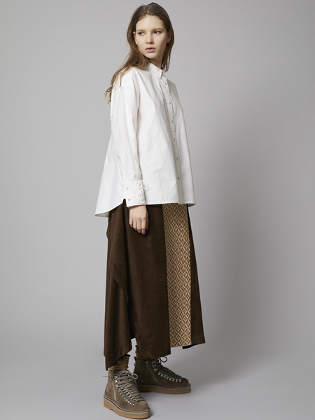 White Mountaineering▶︎▶︎Contrasted gathered skirt