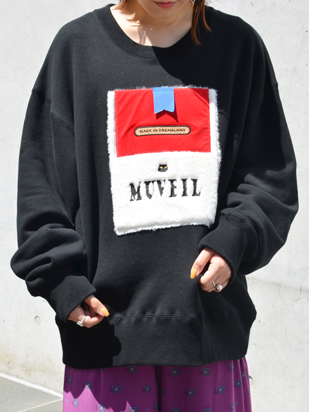 ストリート感の強いビッグスウェットも、MUVEILらしくユニークに。