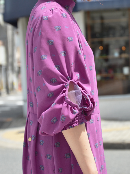 ちっちゃな電話がいっぱいプリントされたレトロなワンピース。