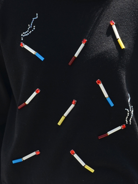 preシーズンを象徴するタバコがビジューやストーンで刺繍されています。