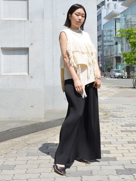 あわせて履いたプリーツパンツは、2年前にスタッフ争奪戦の中、