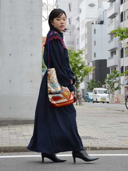 秋の装いを意識しだす9月頭には、見た目涼しげなのにフルスリーブでちゃんと秋っぽい。