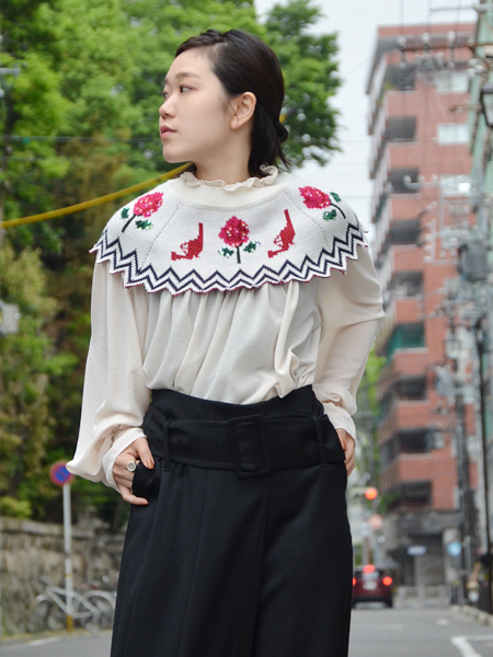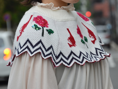ニットで編んだ付け襟…?をドッキングさせて、インパクトを持たせました。