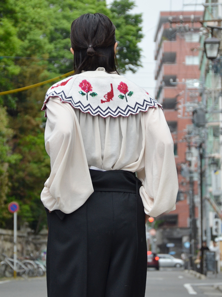 とってもとっても繊細な、お花のレースと切り替えて作られたシャツは、